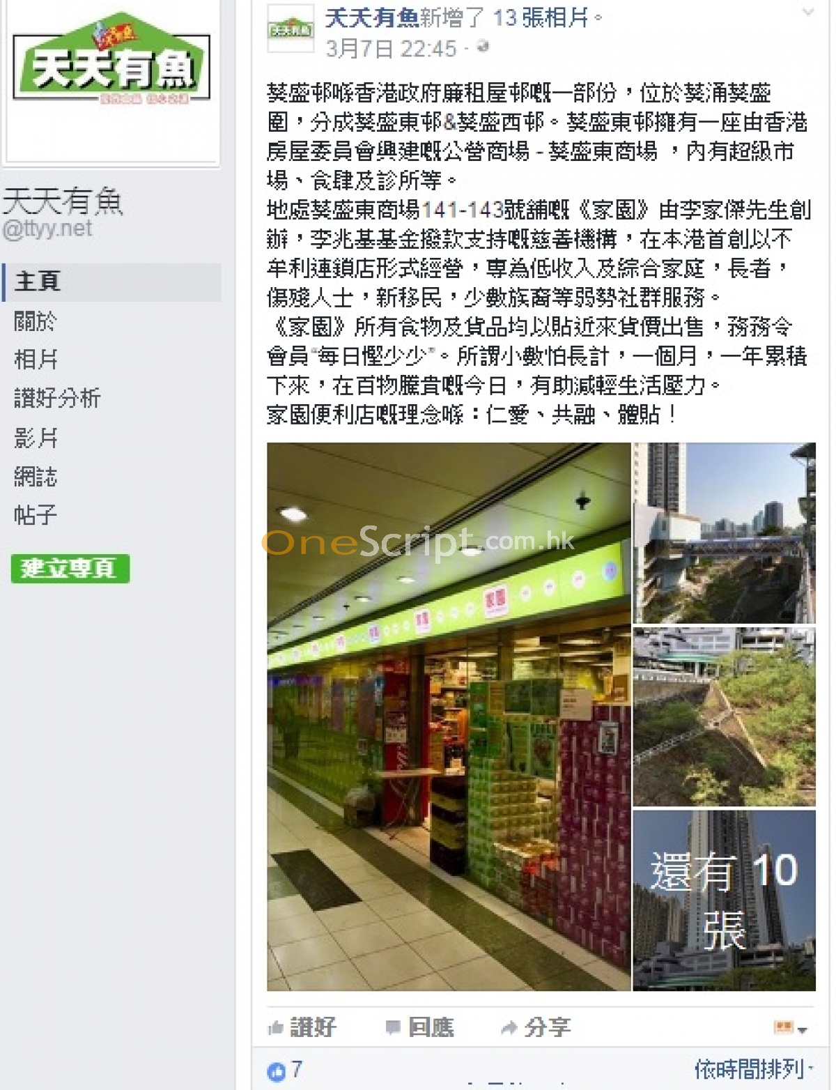 地處葵盛東商場141-143號舖嘅《家園》由李家傑先生創辦,李兆基基金撥款支持嘅慈善機構,在本港首創以不牟利連鎖店形式經營,專為低收入及綜合家庭,長者,傷殘人士,新移民,少數族裔等弱勢社群服務。