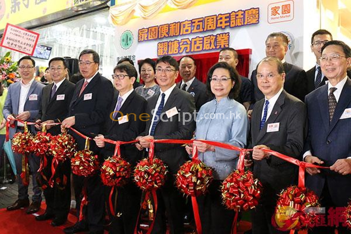 香港行政長官夫人梁唐青儀,政務司司長張建宗,立法會主席梁君彥,勞工及福利局局長蕭偉強,中聯辦九龍工作部部長何靖及多名立法會議員、官員和地區人士出席「家園便利店」開業5周年暨觀塘分店開幕典禮。