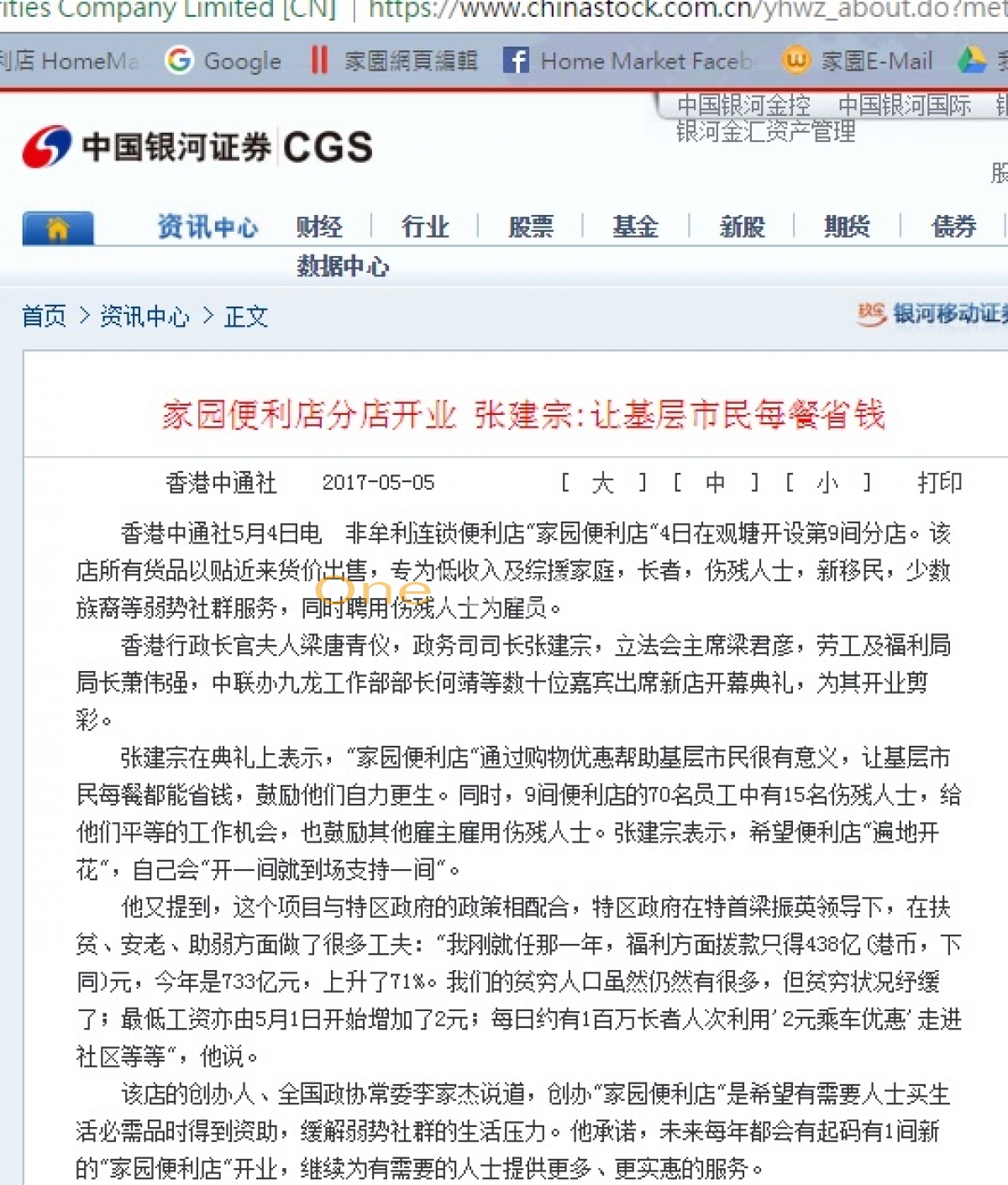 张建宗在典礼上表示,"家园便利店"通过购物优惠帮助基层市民很有意义,让基层市民每餐都能省钱,鼓励他们自力更生。同时,9间便利店的70名员工中有15名伤残人士,给他们平等的工作机会,也鼓励其他雇主雇用伤残人士。张建宗表示,希望便利店"遍地开花",自己会"开一间就到场支持一间"。