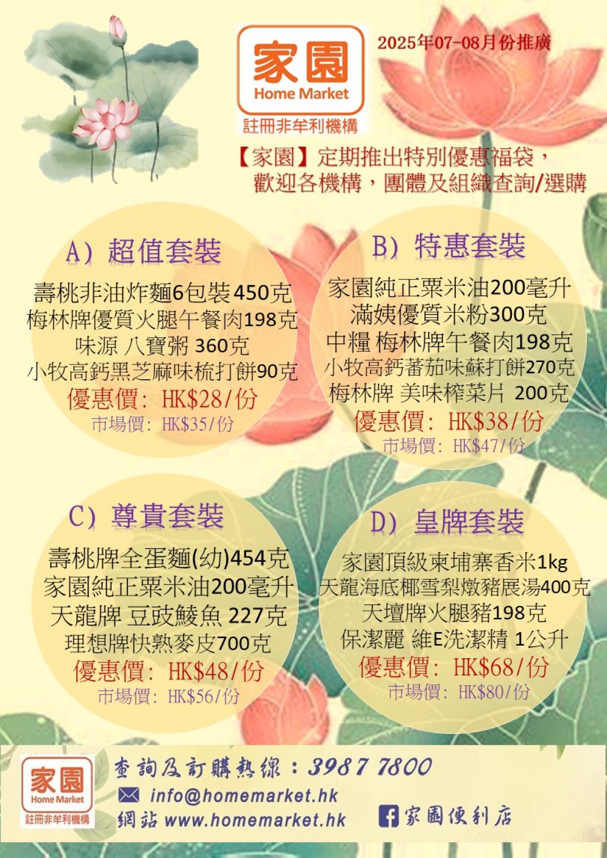 「家園」定期推出7-8月特別優惠福袋套裝。歡迎各機構、團體及組織查詢/選購。