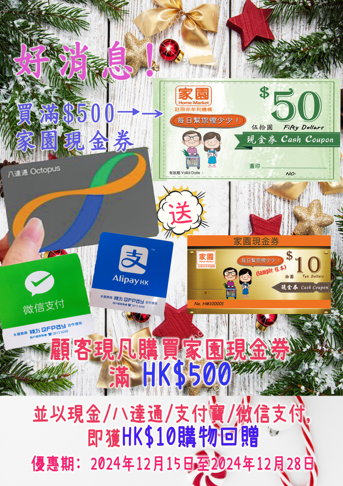 凡購買家園現金券滿 $500,即可獲贈 $10回贈券。$10 回贈券可即時使用,與您即時分享歡樂時光!現金券可自用或送禮,讓我們攜手,將愛與祝福化作有溫度! 有感情的行動! 歡迎善心人士或慈善機構聯絡本公司職員(熱線電話:3987 7800)了解詳情及訂購。