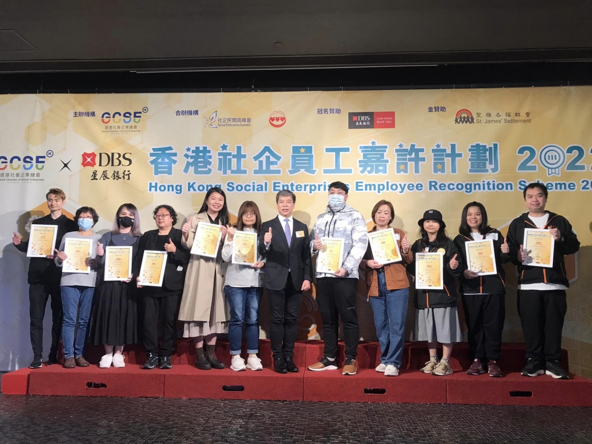 「香港社企員工嘉許計劃」是本港社企界每年重頭項目兼盛事,透過這計劃讓大眾人士知悉社企員工的付出及貢獻,尤其過往疫情衝撃及困難重重,可幸我們仍有這批默默耕耘的同事,緊守崗位!咬實牙關!讓社區更多基層弱勢得到幫助。