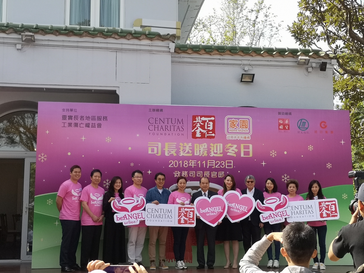 2018年11月23日,於山頂白加道政務司長官邸,由「百仁基金」及「家園便利店」主辦 「Be Angel Action - 司長送暖迎冬日」午宴及派福袋活動。