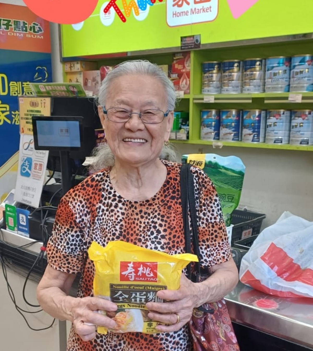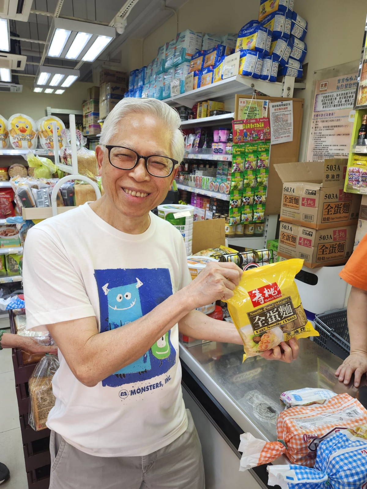 家園「有心人」善長於今天早上(2025年5月23日)再次慷慨地向全線「家園便利店」的850位長者會員贈送「壽桃牌全蛋麵」,每位長者均可獲得一份,令大家笑容滿面、笑呵呵。