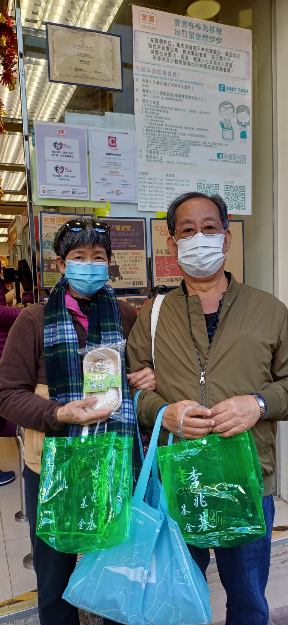 「家園」全線17間分店攜手共進,承載著李兆基老先生樂善好施的仁愛精神。在今天2月2日(農曆初十五),3750份「李兆基基金贊助新春福袋」陸續送到基層及長者會員的手中。每一份福袋裡,都裝載著「兆基福緣素包」、「優質羊毛格仔頸巾」及滿滿的「健康、溫暖」祝福。