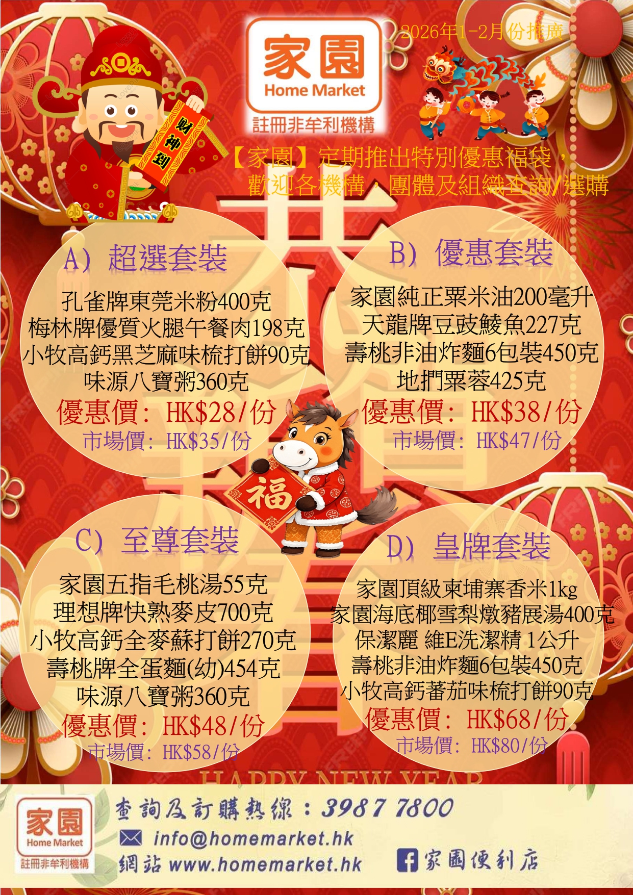 (1) 可填寫「福袋訂購單」後, 請電郵至 info@homemarket.hk 或傳真至 2720 0137 及致電話 3987 7800 作訂單確實。