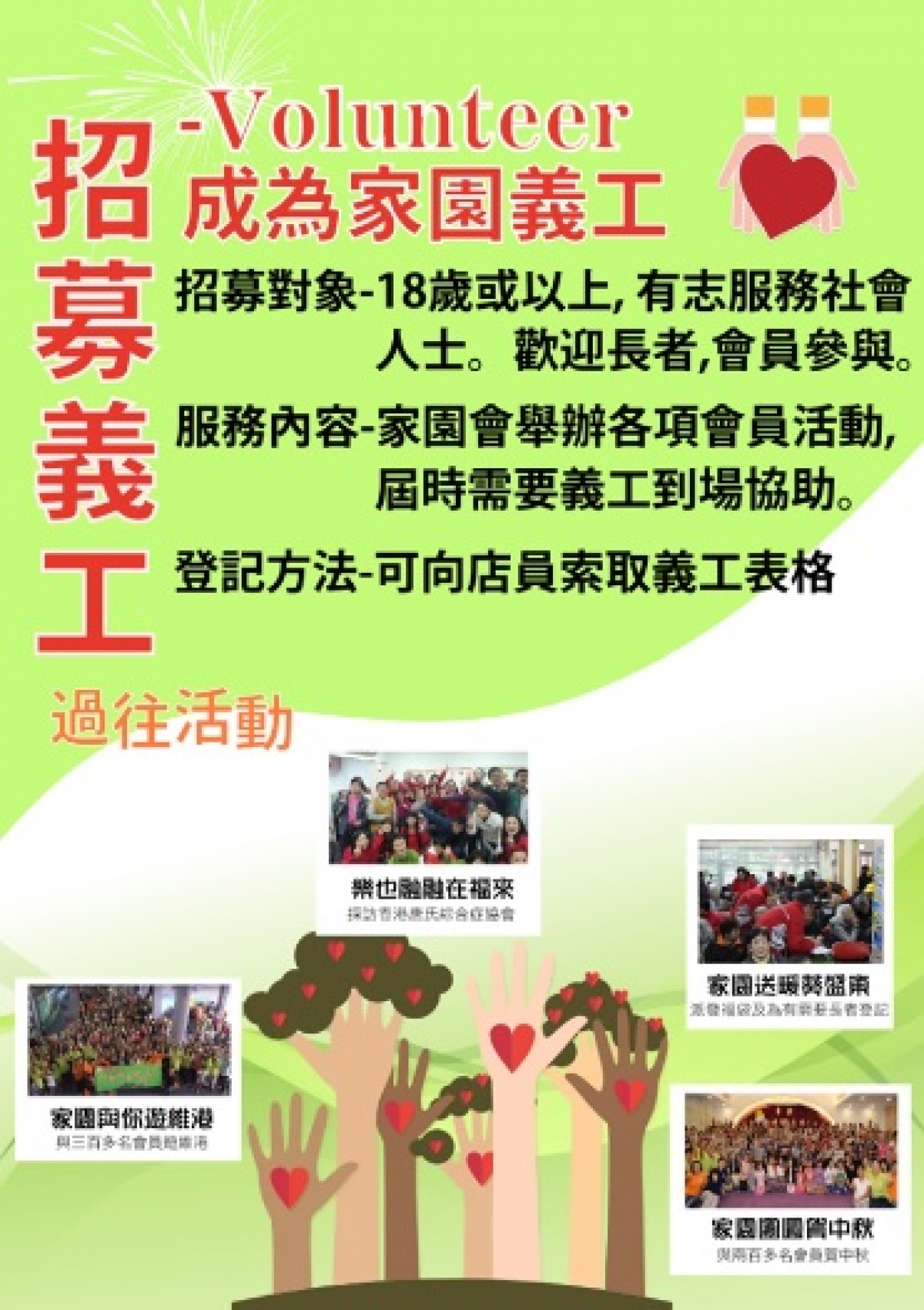 家園義工隊正式於3月12日成立。家園便利店希望把關愛社會的精神散播開去。義工隊計劃令顧客,街坊,店員可以一同加入義工隊,共同推廣愛心運動。