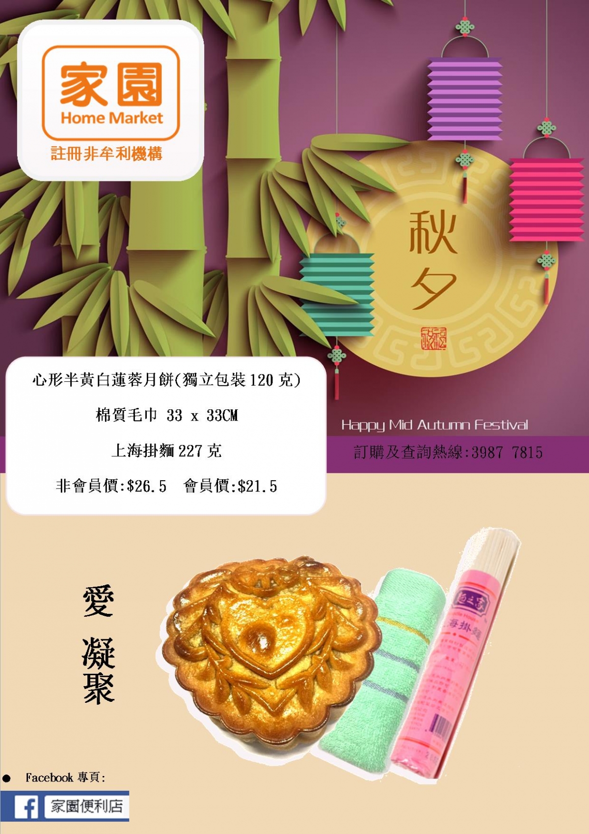 中秋節,團圓節。 與家人聚首共渡月滿佳節之時,我們亦可向親朋或社會上有需要人士送上關懷與祝福。將關愛傳遞到更多地方,讓愛凝聚!歡迎訂購「家園」中秋愛凝聚福袋。