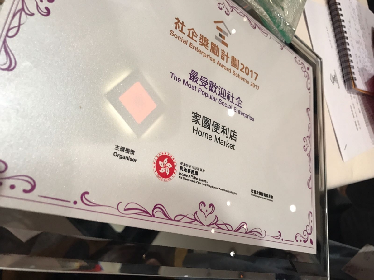 大會於頒獎禮當晚現場公布「家園」獲得「最受歡迎社企」獎項,而此獎項是由公眾人士以網上投票方式選出,可謂意義非凡。「家園」更會持續宣揚仁愛,共融,體貼的理念,繼續不牟利,為基層。