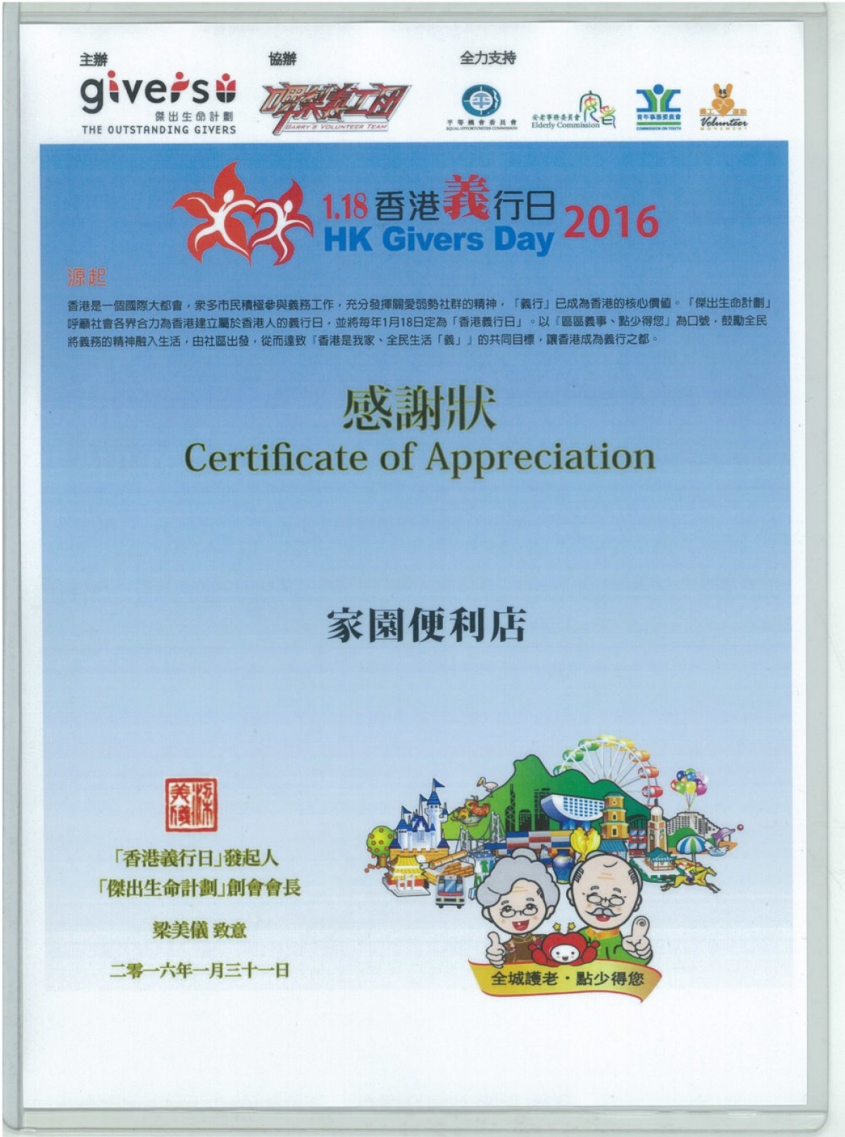 家園便利店副總幹事鄭泳舜先生並獲邀出席義工頒奬禮 ,身體力行地支持社區義工工作 ,發揮關愛弱勢社群的精神 。