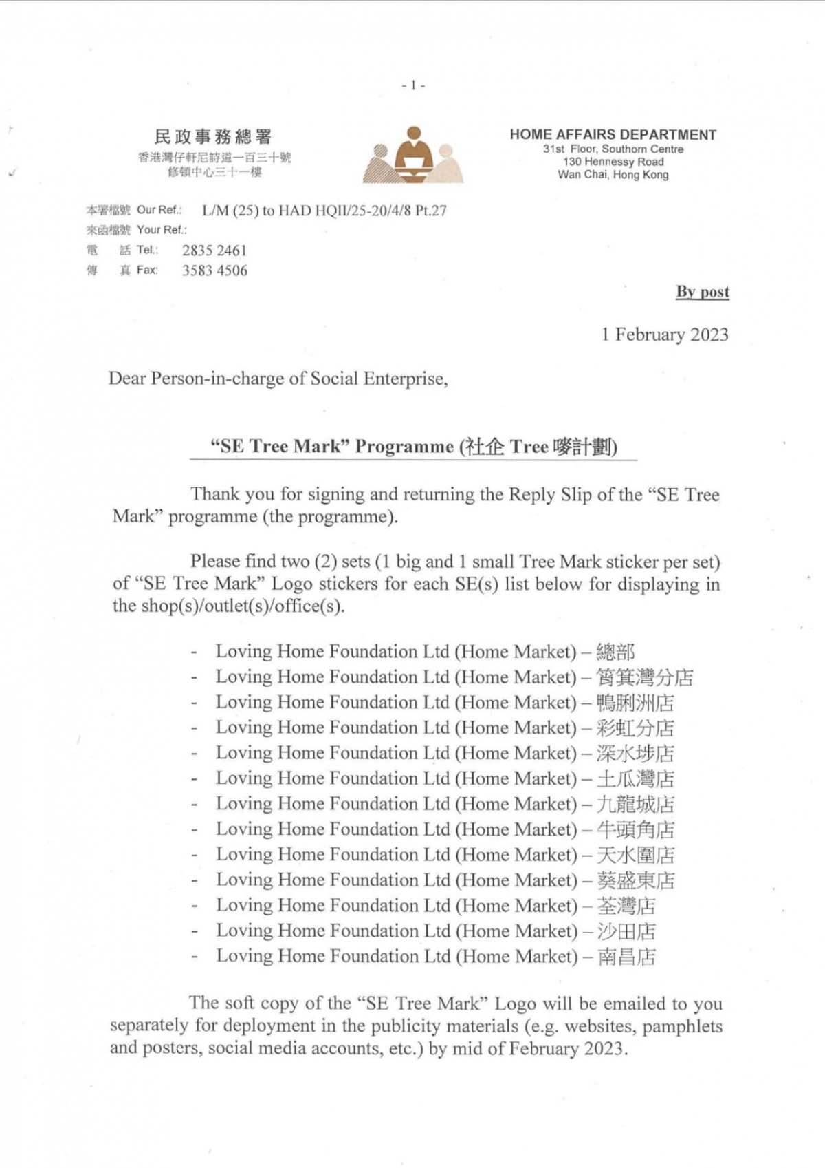 "Home Market" has gained a "Tree Mark - Social Enterprise Achiever" logo under the "Social Enterprise Tree Mark Scheme" of The Home Affairs Department. This lovely "Tree Mark" logo is designed to aim to help the public recognize "Home Market" is a recognized social enterprise, and also encourage the public to have greater support.