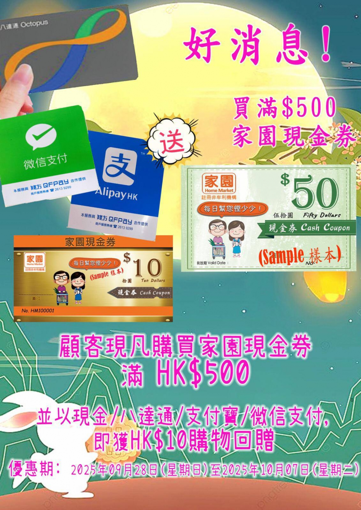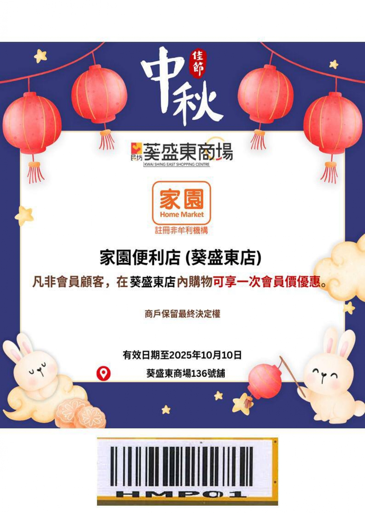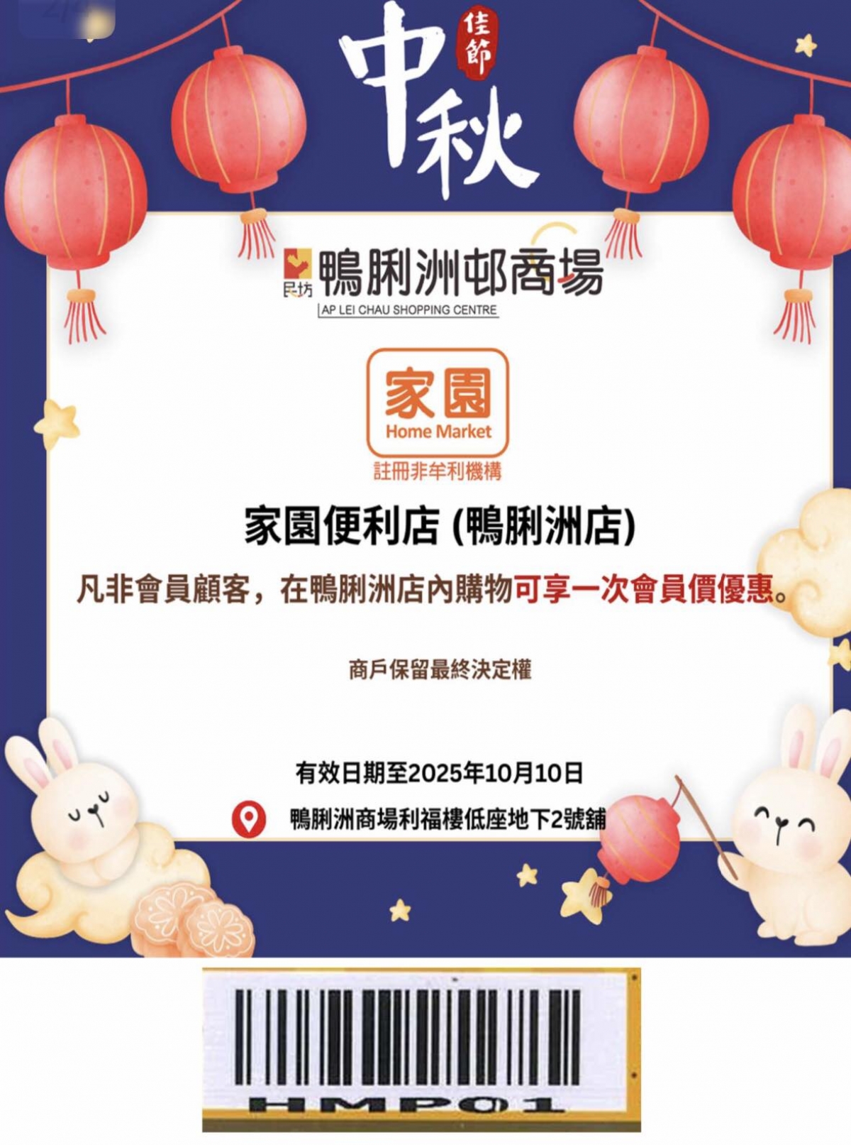 Non-members shopping at our "Kwai Shing East" or "Ap Lei Chau " branches can enjoy member-exclusive discounts during this period. This offer is valid until October 10.