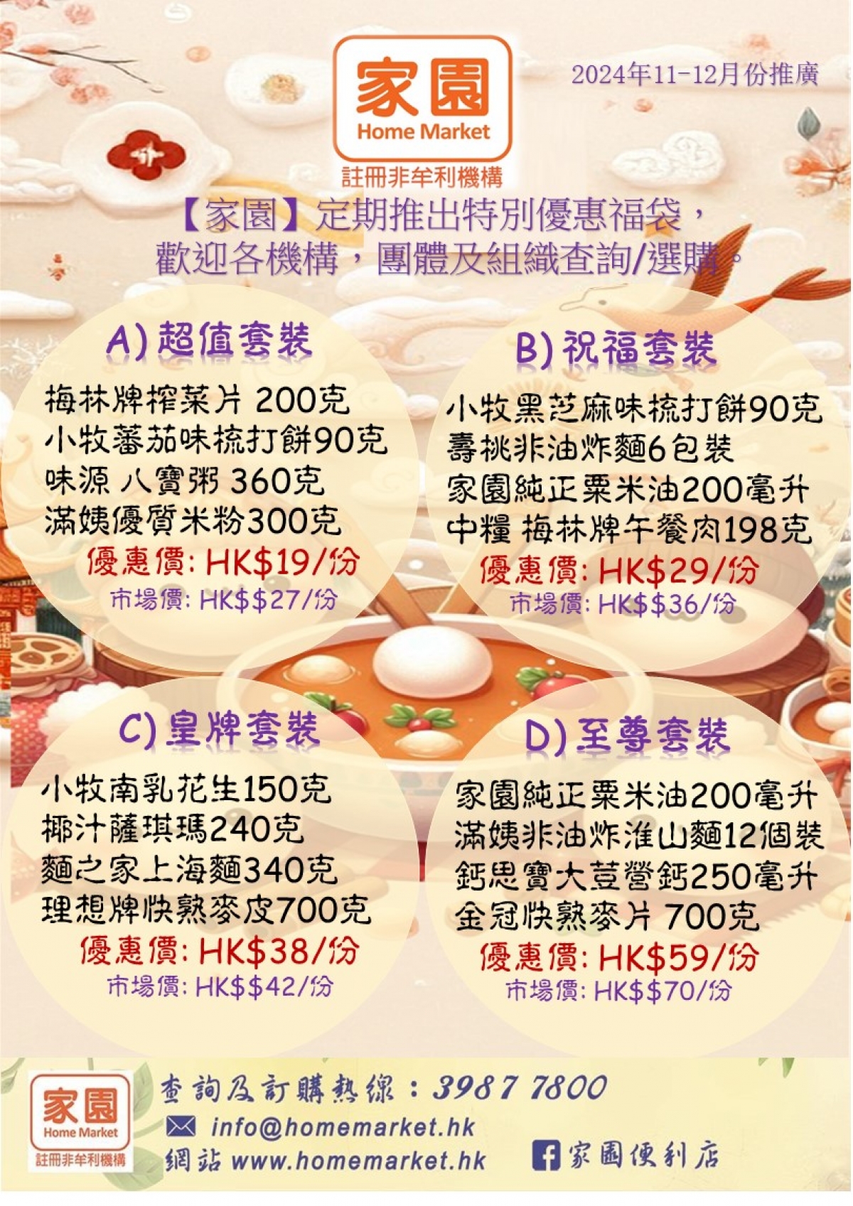 「家園」定期11-12月推出特別優惠福袋套裝。歡迎各機構、團體及組織查詢/選購。