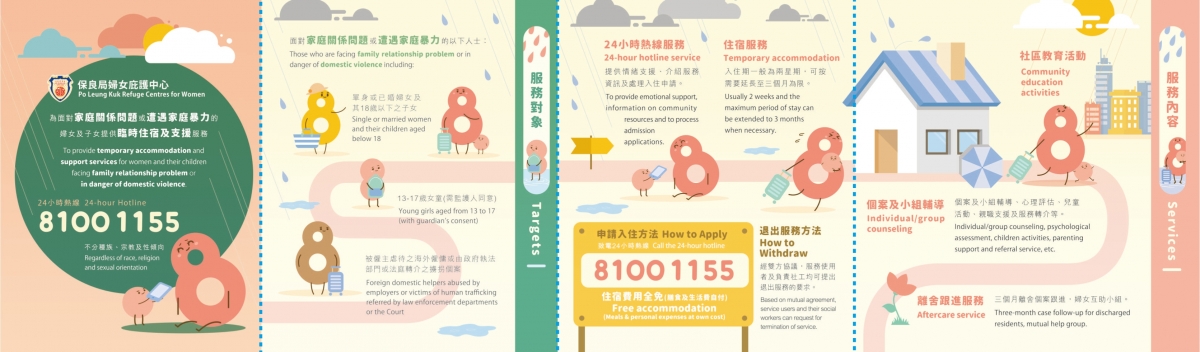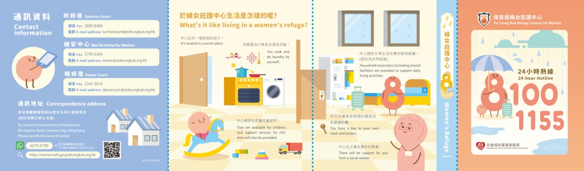 保良局家庭危機支援服務每年收到約1000宗求助個案,如果你或你身邊的親友、鄰居、同事遇到家庭或伴侶關係問題需要協助,或正面對衝突並需要緊急住宿,可致電熱線(24小時)或WhatsApp聯絡支援服務中心職員。